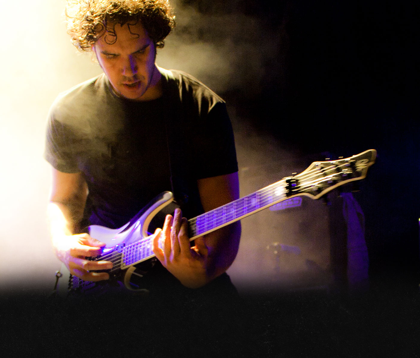 The university books got swapped for books on guitar techniques and a lot of guitarmags. Stephan is, accept for a few basic lessons, a completely self-taught musician. Learning licks and riffs from watching and listening to his heroes.